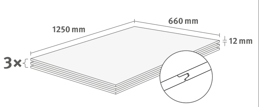1250 x 660 x 12mm